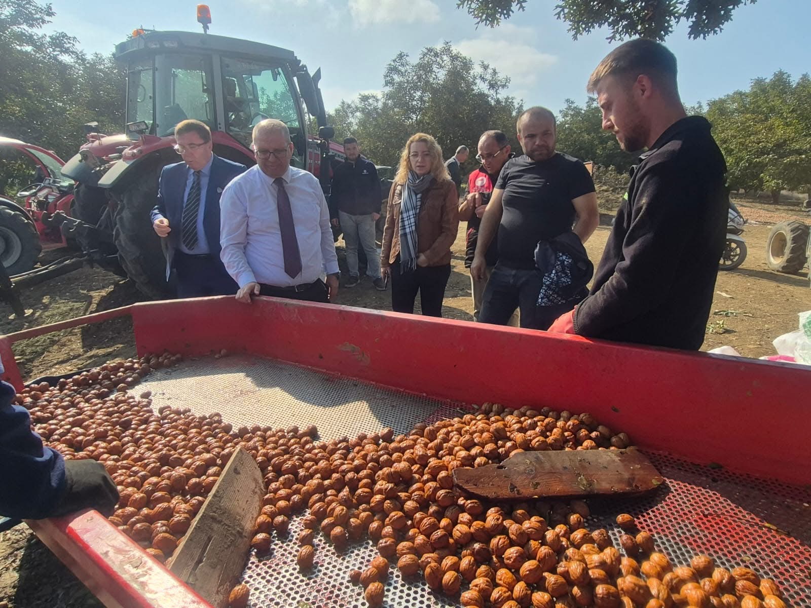 İlçe Kaymakamı Turgut GÜLEN, Yıldız Mahallesi’nde ceviz hasadına katılarak üreticilerle bir araya geldi.
