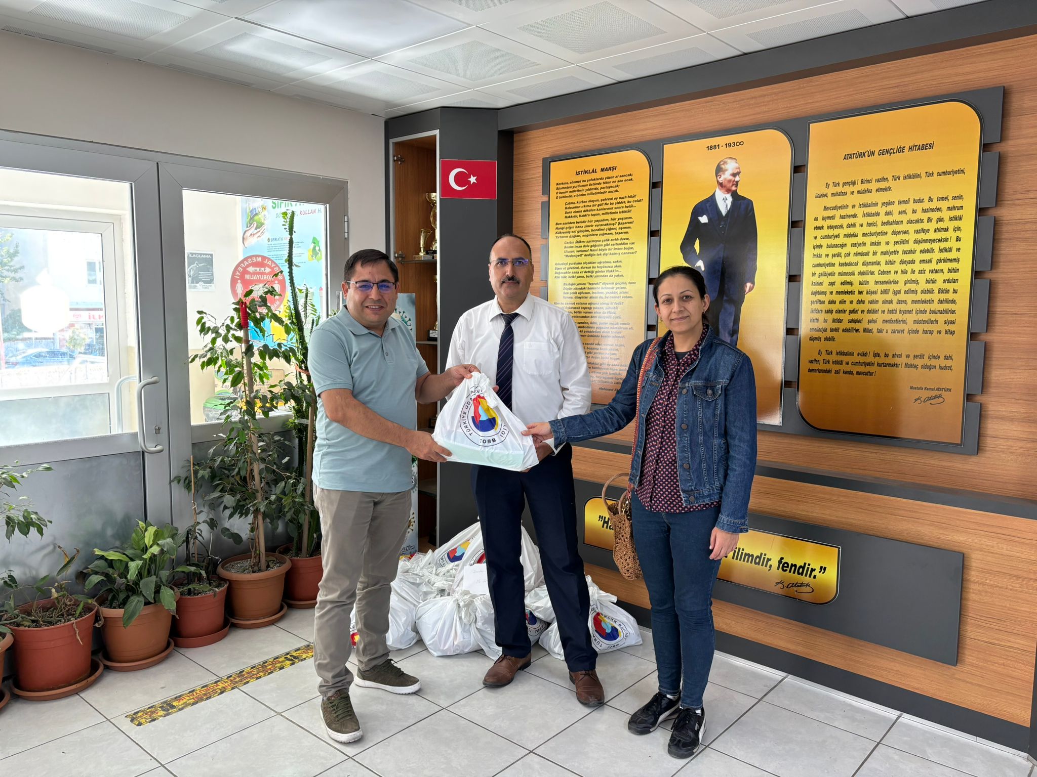 Türkiye Odalar ve Borsalar Birliği’nden (TOBB) sağlanan kaynakla temin edilen kırtasiye malzemeleri, 2025-2026 eğitim öğretim yılı başında ilçemizdeki ilkokul, ortaokul ve lise okul yönetimlerine teslim edilerek toplamda 400 ihtiyaç sahibi öğrenciye ulaştırılmak üzere dağıtıldı.