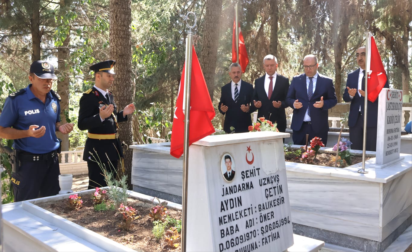 Öğle saatlerinde ilçe protokolü, şehitlikleri ziyaret ederek aziz şehitlerimizi dualarla andı. Merkez Yeni Mahalle, Kayıkçı, Karapürçek ve Göbel Mahallelerindeki şehitliklerde Kur’an-ı Kerim tilavetleri gerçekleştirildi ve dualar okundu
