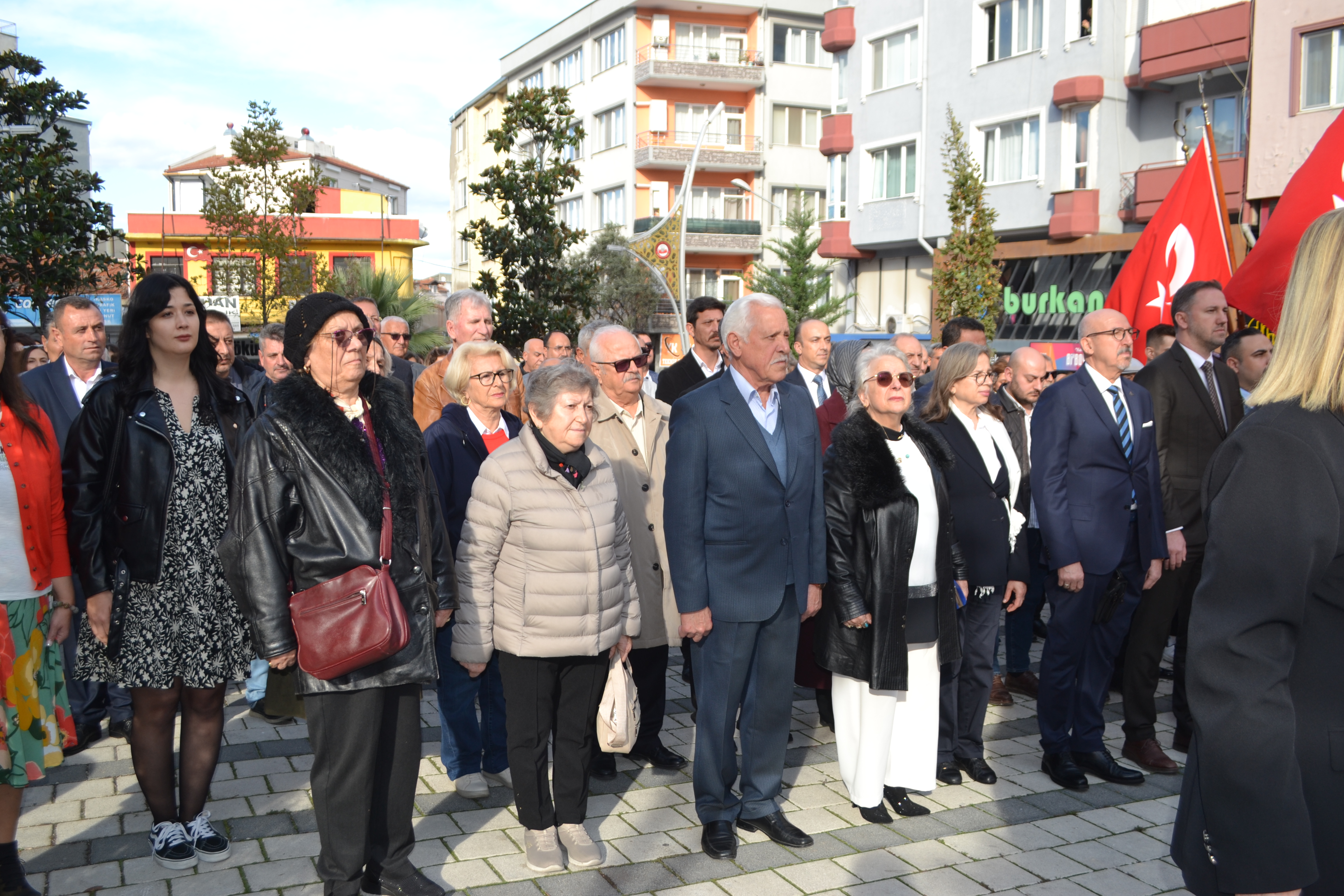 Günün ilk programı Atatürk Anıtı’nda yapılan çelenk sunma töreniyle başladı. İlçe Milli Eğitim Müdürü Sami Akoğlan tarafından İlçe Milli Eğitim Müdürlüğü adına sunulan çelenkle başlayan törende, ardından saygı duruşu ve İstiklal Marşı okundu. Törene Belediye Başkan Vekili Kemal Ayyıldız, protokol üyeleri, öğretmenler ve öğrenciler katıldı.