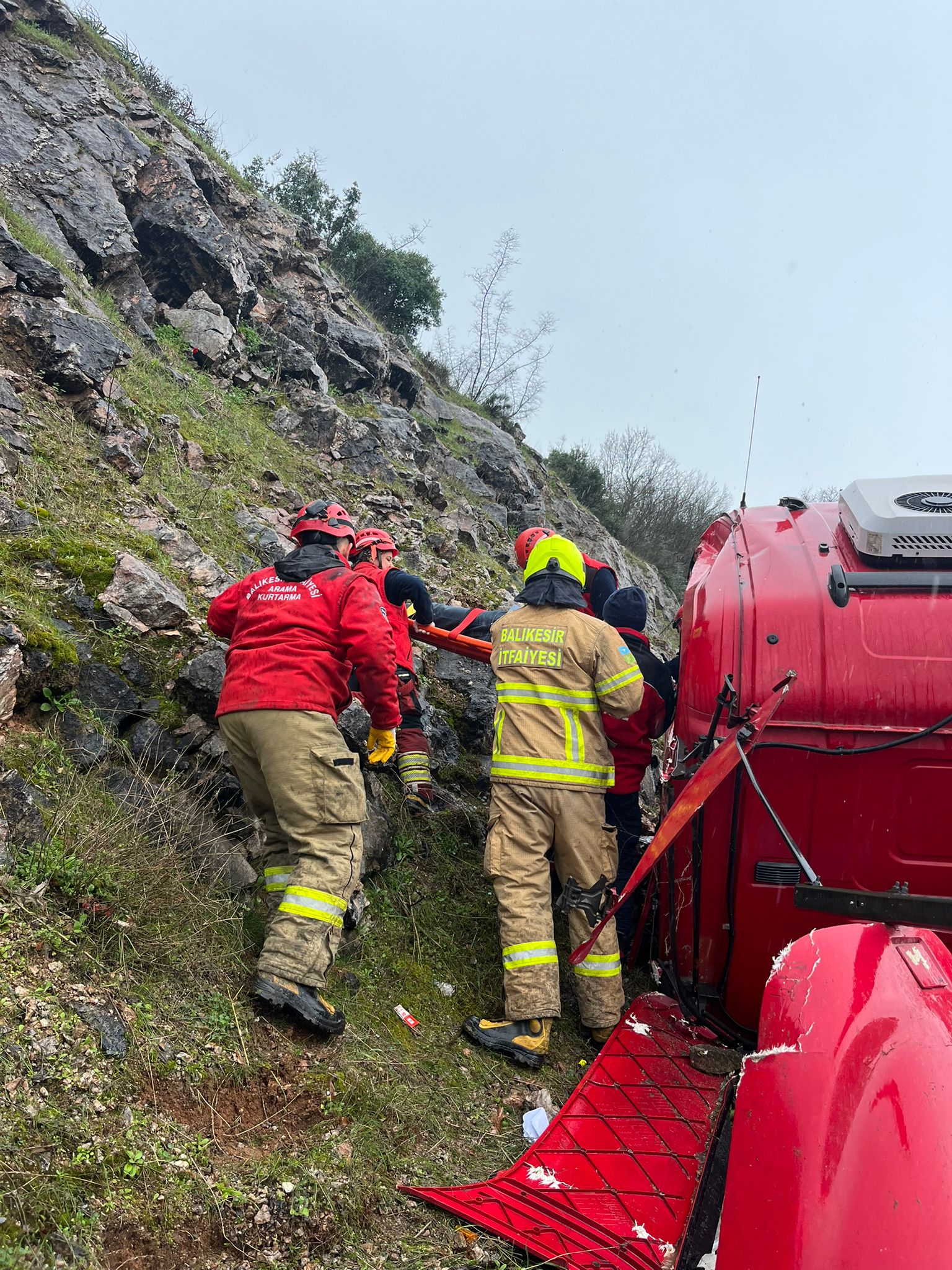 Edinilen bilgiye göre, 06 EHE 484 plakalı çekici ve 06 DHB 977 plakalı dorsenin karıştığı kazaya Susurluk ve Karesi ekipleri müdahale etti. Araçta sıkışan sürücü S.D., ekiplerin çalışması sonucu bulunduğu yerden çıkarılarak 112 sağlık ekiplerine teslim edildi.